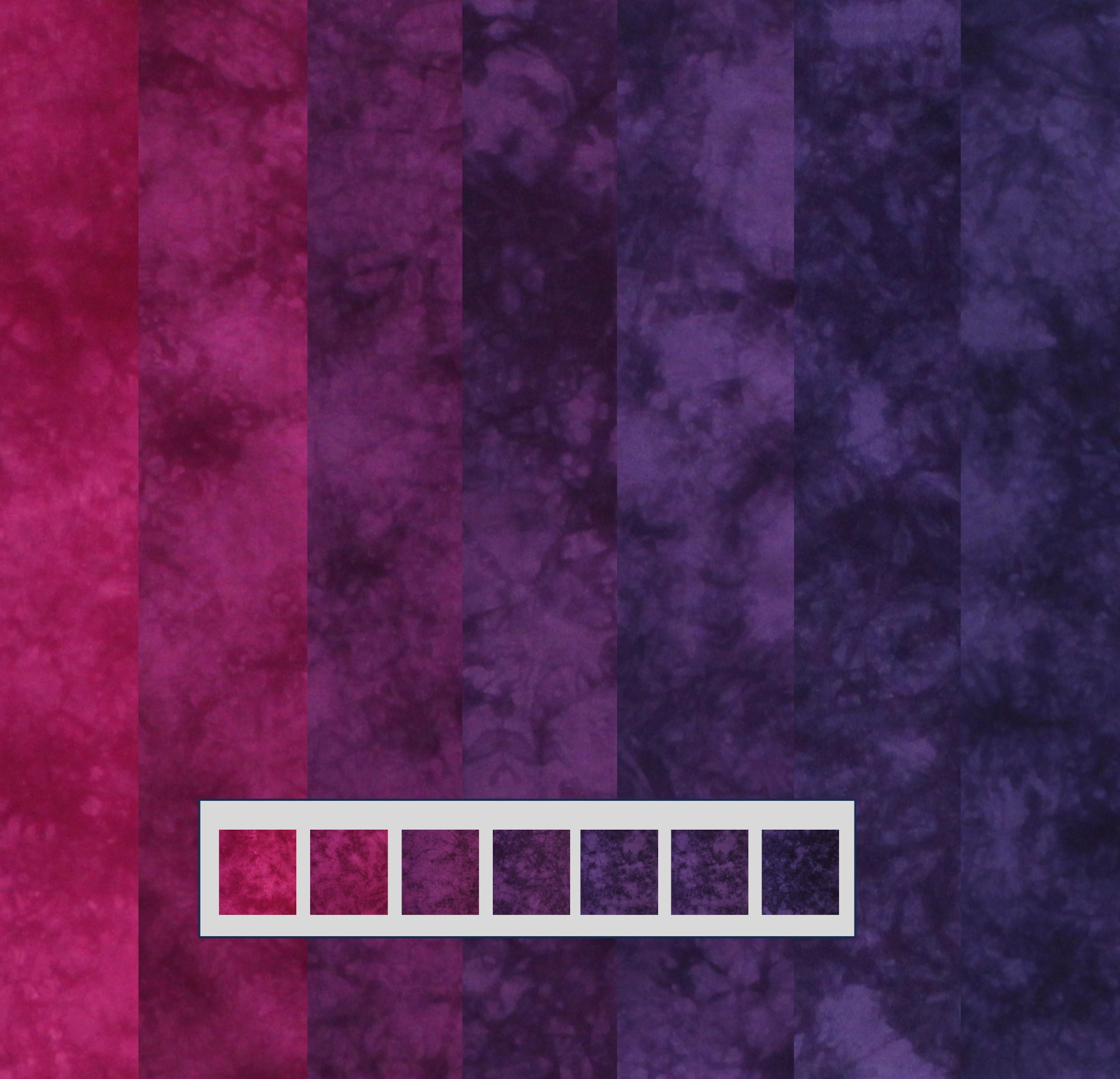 Saturated jewel tone quilt fabric bundle. Colors range from plum through purple to blue violet. These highly textured semi-solids will give you a great range of colors which all work well together. The blended colors and high texture make it suitable for multiple quilting projects, from traditional quilts to modern quilts and art quilts, piecing, applique, fusing etc. Fabric has a thread count of approximately 76-78 and is suitable for hand embroidery as well as machine quilting. Fabric has a thread count of approximately 76-78 and is suitable for hand embroidery as well as machine quilting. Fabric is fusible ready.