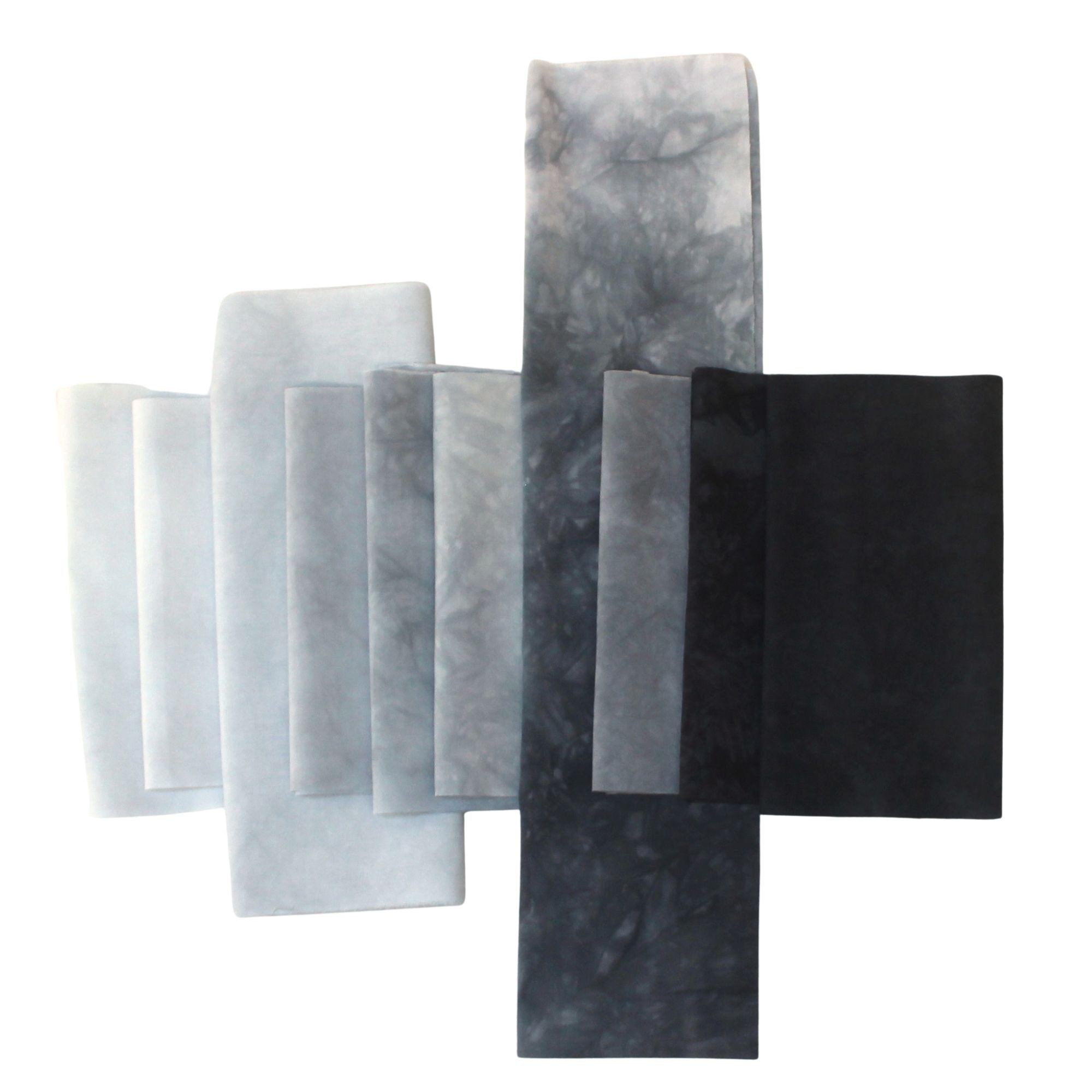 This stash pack of small cuts of gray hand dyed fabric is great for applique and craft projects. Pieces vary in size, but each piece will be at least 8x12 inches OR 9x11 inches OR 10x10 inches. 10 different greens ranging from lime to olive. There may be different fabrics in your bundle, but they are all 100% cotton, and a similar weight, so they can be combined in a project if desired. This unique sampler pack gives you a range of values and textures to work with. Fabric has a thread count of approximately 76-78 and is suitable for hand embroidery as well as machine quilting. Fabric is fusible ready.