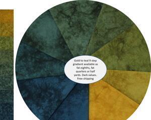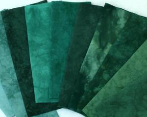 Green gradient bundle of quilting cotton, hand dyed fabric av...