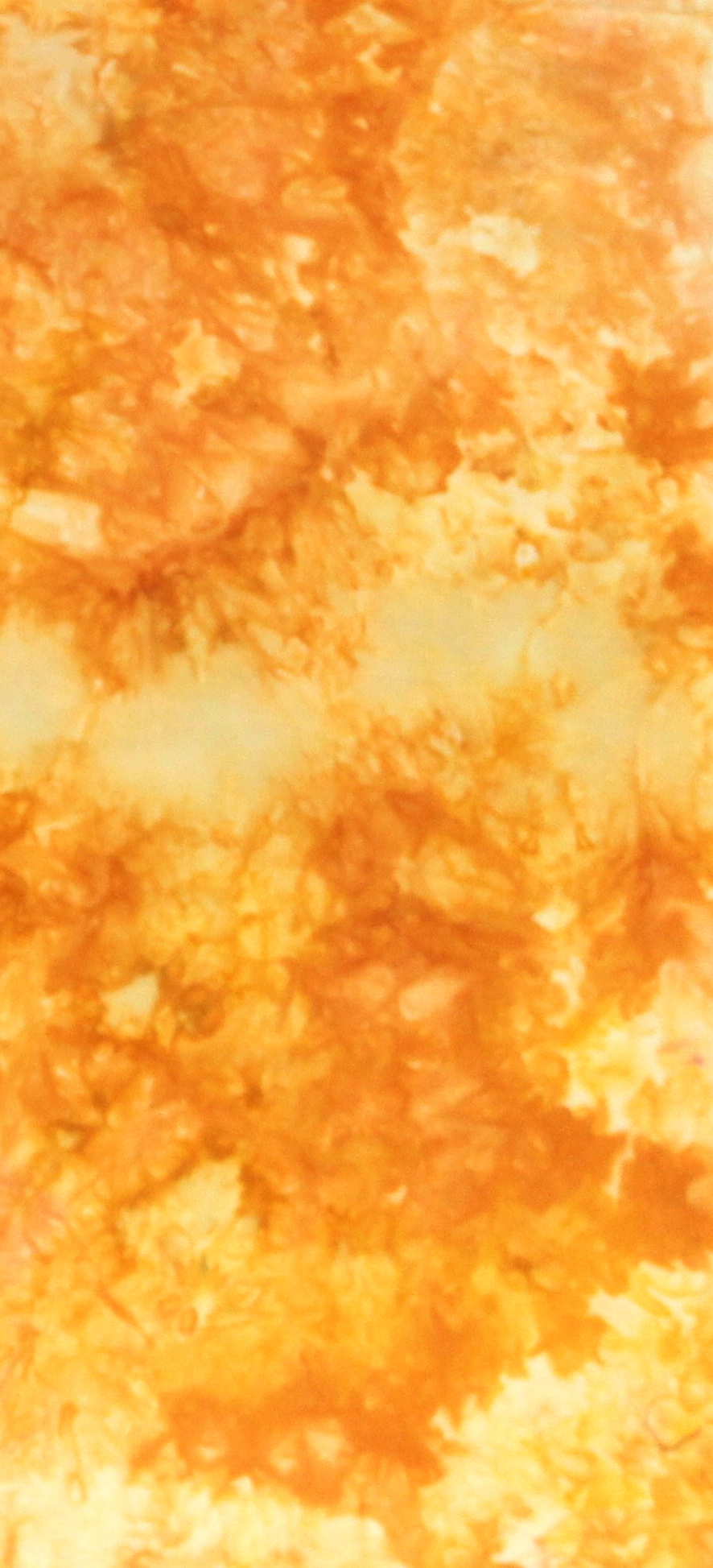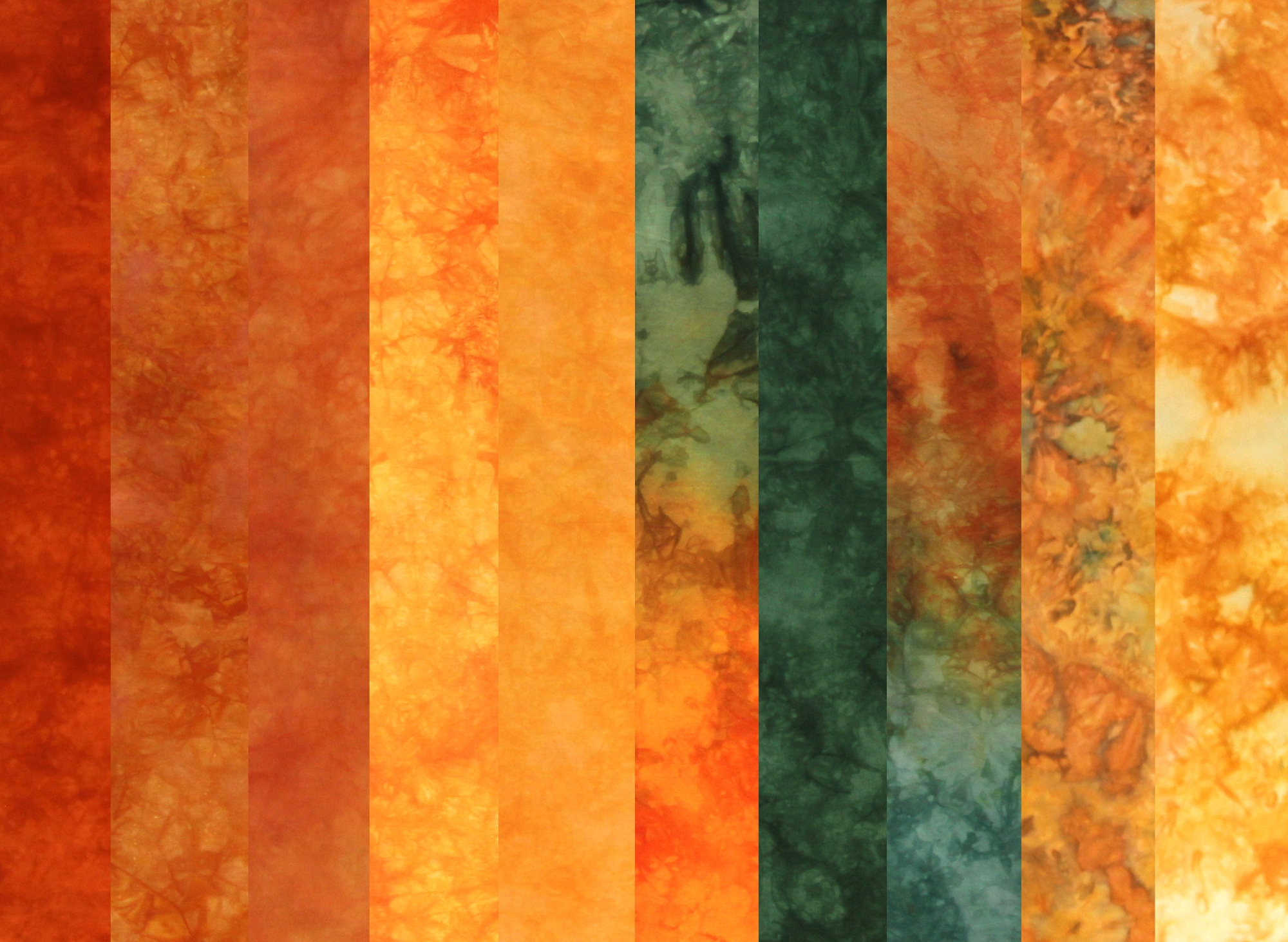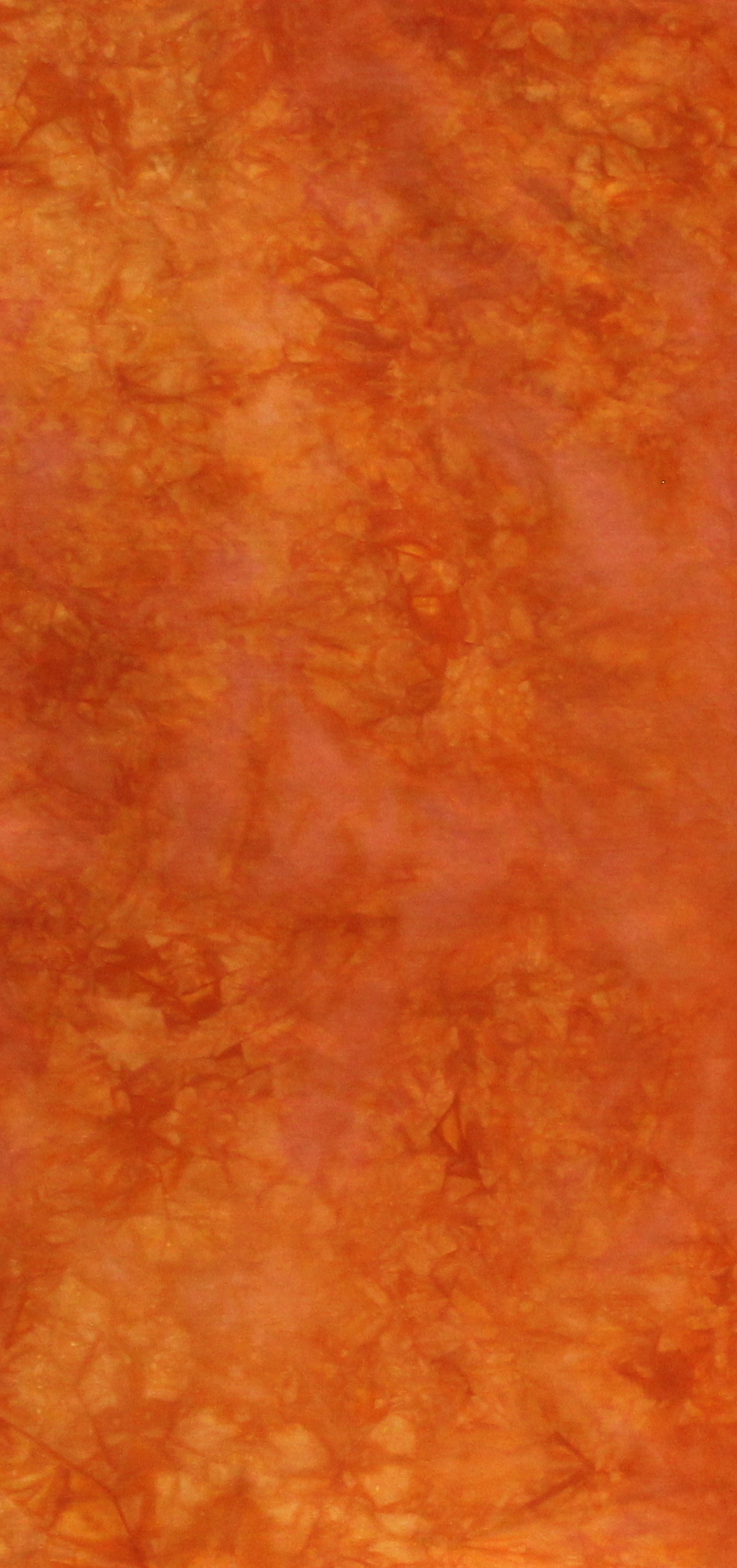 Each piece of fabric has been dyed with my own recipe of Procion MX dyes, and washed according to the manufacturer's instructions. After multiple hot washes to remove the excess dye, each piece is steam ironed on white muslin to check for color fastness under normal piecing or fusing conditions. Cold wash recommended. Use of a color catcher is advised if using a hot wash.