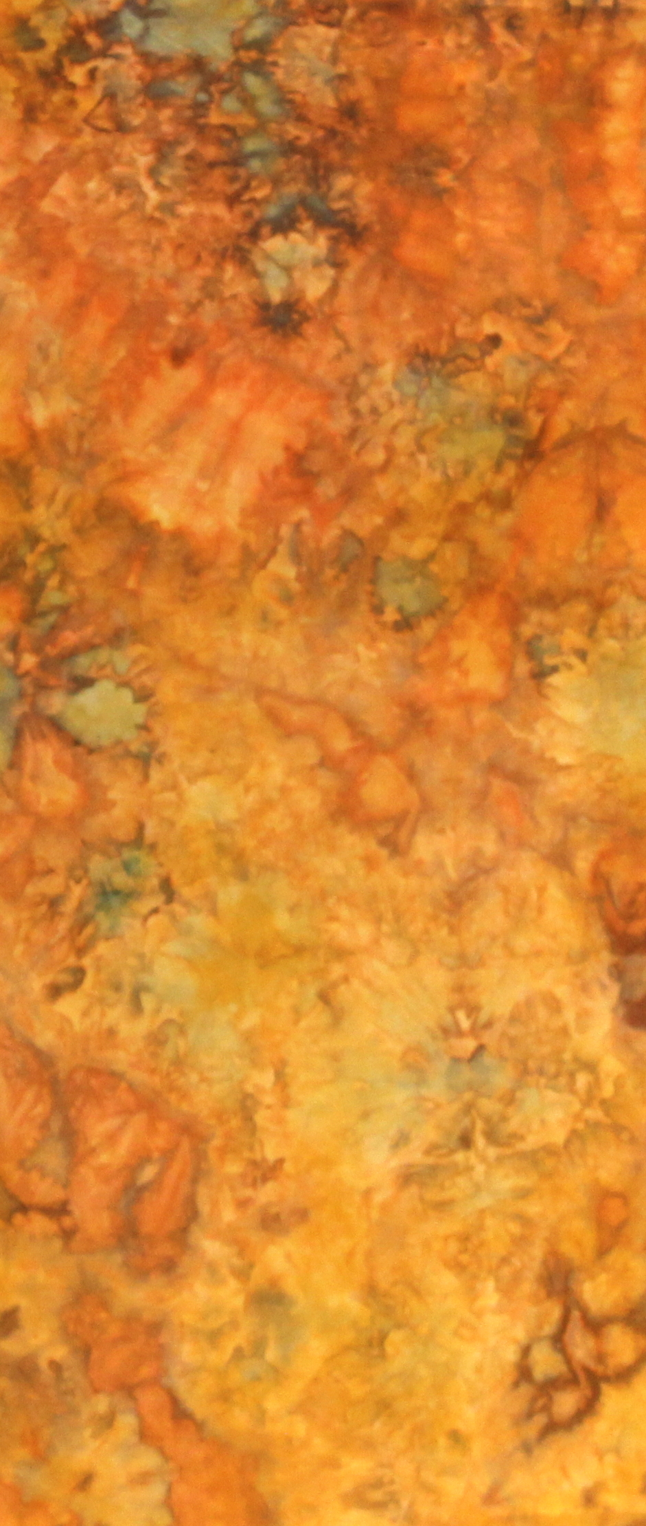 Recipe: take 100% cotton with a tight weave suitable for hand and machine quilting. Add Procion MX dye which bonds with the fabric, unlike fabric paints. Tap magic wand to add a touch of magic as the colors swirl and blend together in low water immersion dyebaths. This creates a random texture on the fabric with lighter and darker areas of the particular color. Wash several times in very hot water to release excess dye. Iron for hours, wishing there was a magic wand for that! Admire, pet and maybe even make something with all the lovely fabric!
