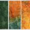 Fabric bundle of 10 fat eighths in varying shades of pumpkin orange and green. Hand dyed quilting cotton sampler pack. There is a range of values to build your stash. These are not a matched gradation, but offer varying shades and textures to add variety to your work. There may be different fabrics in your bundle, but they are all 100% cotton, and a similar weight, so they can be combined in a project if desired. The blended colors and high texture make it suitable for multiple quilting projects, from realistic to abstract. Fabric has a thread count of approximately 76-78 and is suitable for hand embroidery as well as machine quilting. Fabric is fusible ready.