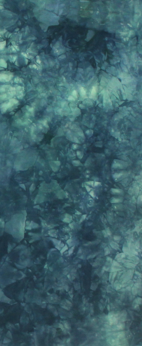 Recipe: take 100% cotton with a tight weave suitable for hand and machine quilting. Add Procion MX dye which bonds with the fabric, unlike fabric paints. Tap magic wand to add a touch of magic as the colors swirl and blend together in low water immersion dyebaths. This creates a random texture on the fabric with lighter and darker areas of the particular color. Wash several times in very hot water to release excess dye. Iron for hours, wishing there was a magic wand for that! Admire, pet and maybe even make something with all the lovely fabric!